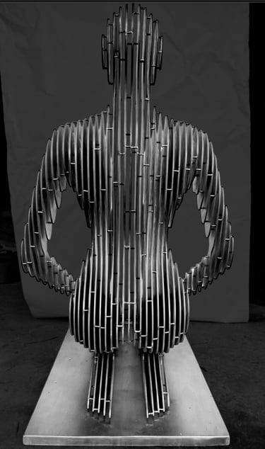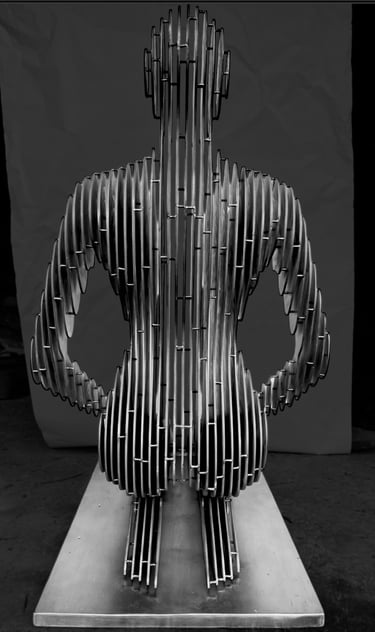 Projet et Realisation d 'une sculpture acier Pre-Coupe - Assemblages Entretoise inox