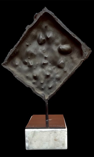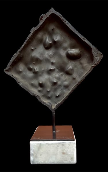 Tel un fragment d’océan figé dans le bronze, cette sculpture abstraite aux lignes triangulaires évoque la puissance et la poésie des éléments marins. Sa silhouette moderne et intrigante semble capter le mouvement perpétuel des vagues, la danse du vent sur l’eau et le mystère des profondeurs abyssales.