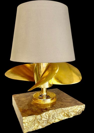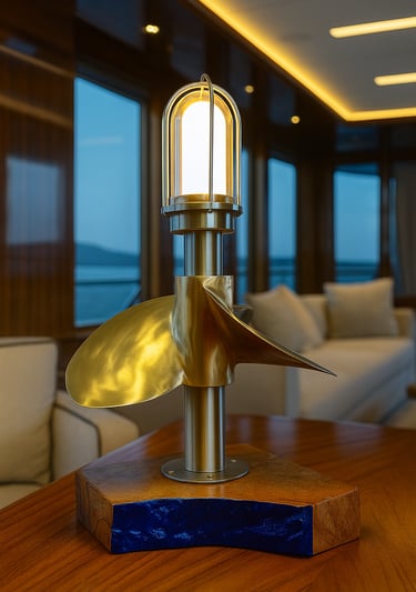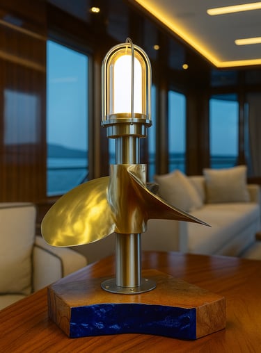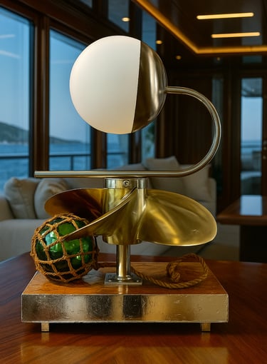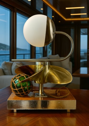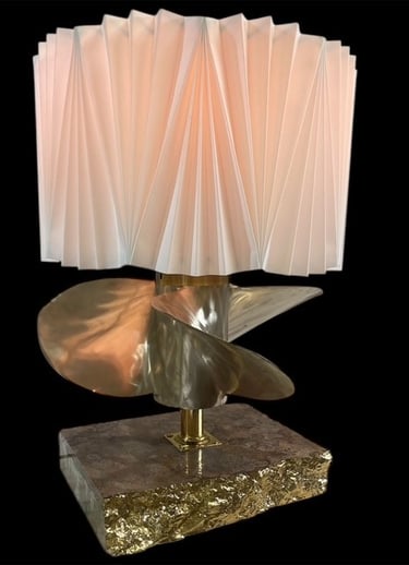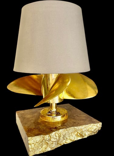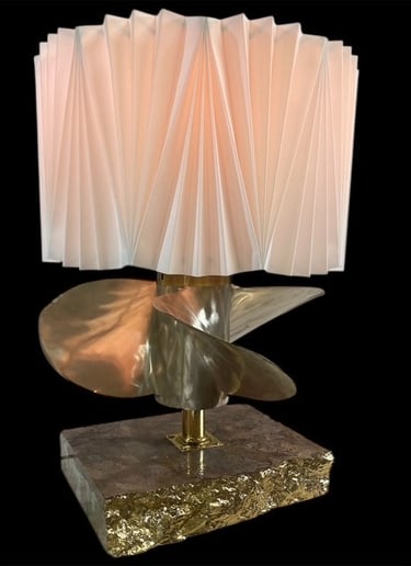 Dans chaque courbe d’hélice, un souffle d’aventure. Ces sculptures-lampes uniques donnent une seconde vie aux hélices marines, patinées par le sel et le temps puis polished par mes soing. Fusion entre art industriel et poésie nautique, Elles capturent l’essence du large, figée dans le bronze, et la projettent en lumière.