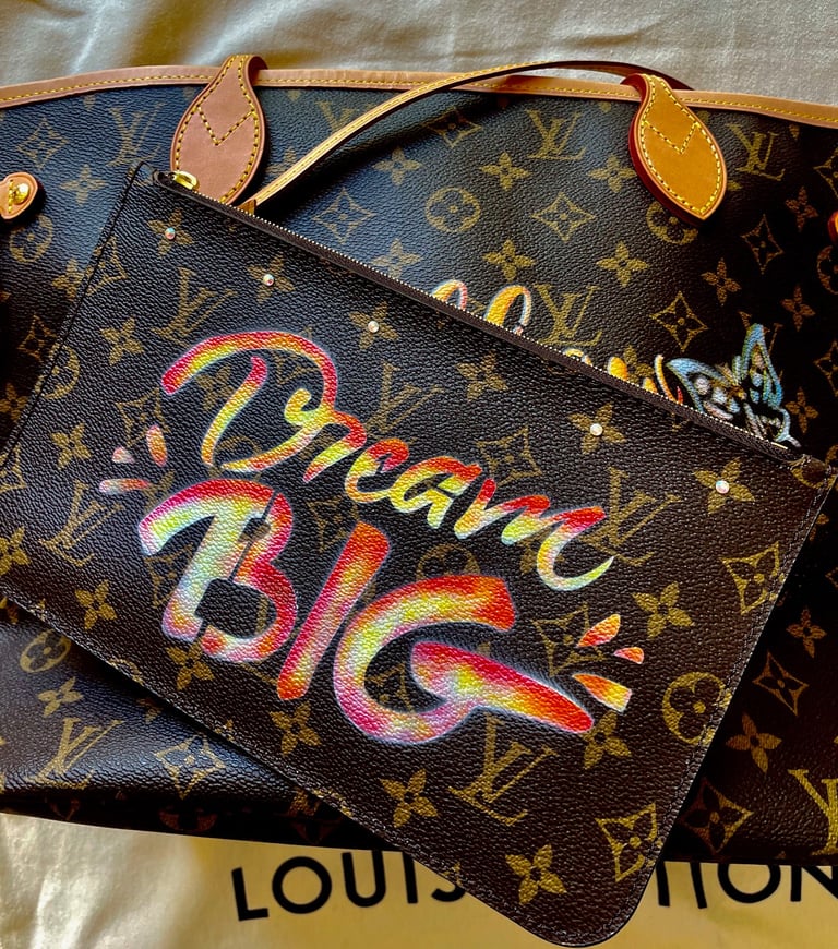 Ce sac Louis Vuitton unique en son genre a été personnalisé par l'artiste Sylvain Copon, spécialisé dans la customisation de sacs de luxe. Le cuir monogrammé classique de la marque a été sublimé par une peinture colorée et vibrante.