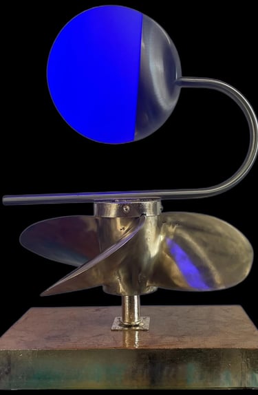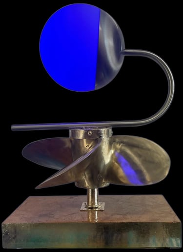 "Équilibre Mécanique" s’inscrit dans une démarche artistique qui interroge le lien entre fonction, mémoire et esthétique. Une pièce rare, idéale pour les amateurs de design contemporain, d’art naval ou de sculptures lumineuses.