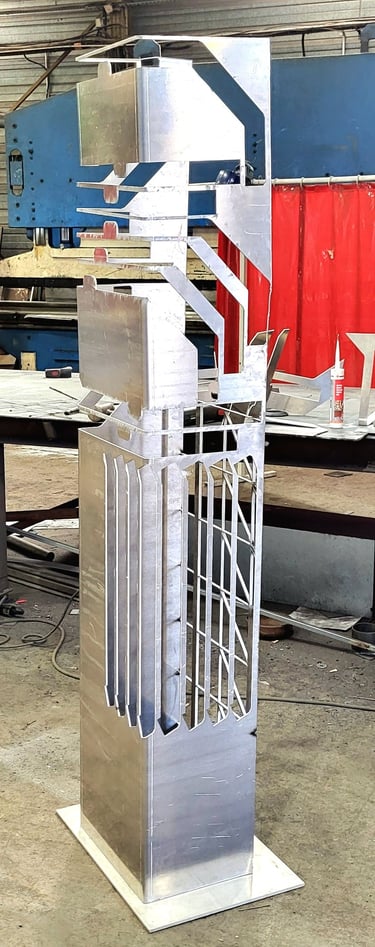 Cette sculpture en aluminium thermolaqué est une pièce unique de 2 mètres de haut,