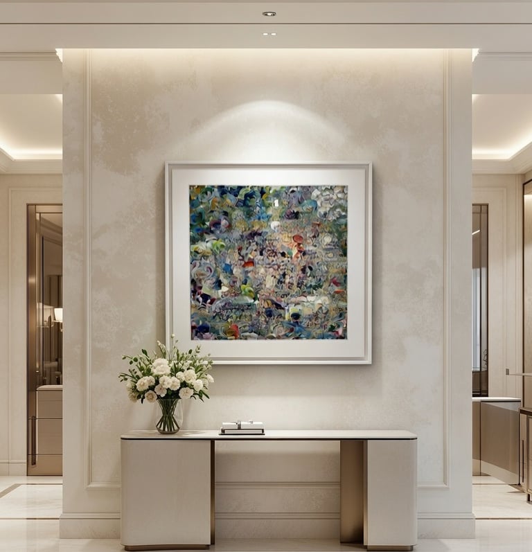 Chaque pièce est conçue pour dialoguer avec les volumes, la lumière et les matières, offrant au client une expérience visuelle unique et mémorable. L’œuvre devient un élément central du décor, sans jamais dominer l’espace, renforçant la sensation de confort, de calme et d’exclusivité.